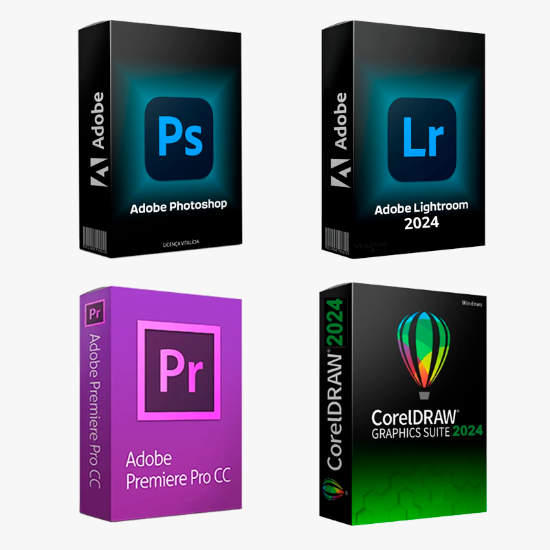 Pack Edição de Imagens e Vetores: Photoshop + Lightroom + Premiere Pro + CorelDraw